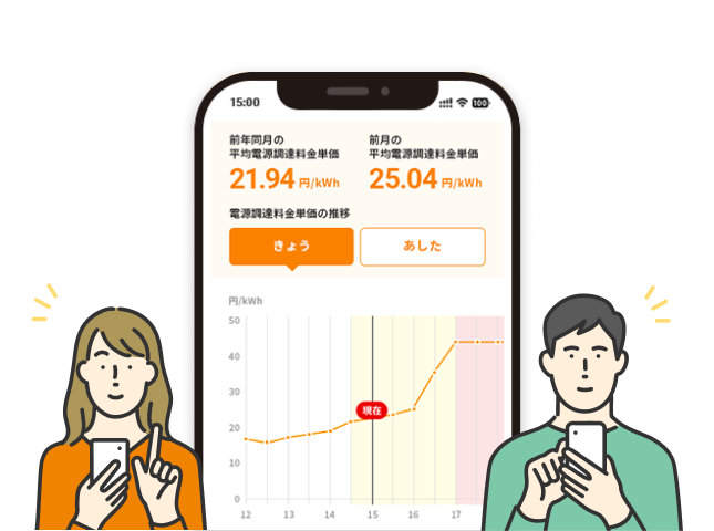 スマートフォンにプッシュ通知で「何時がお得か」「何時に節電すべきか」をお知らせします!