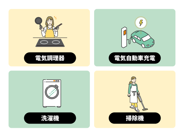市場連動型の電気料金は、夜間よりも昼間の方が安いことをご存じですか?例えば電気調理機器での料理、掃除機、洗濯などは、同じ電力量を使用したとすると、昼間に行った方が電気料金が安くなりやすいです。