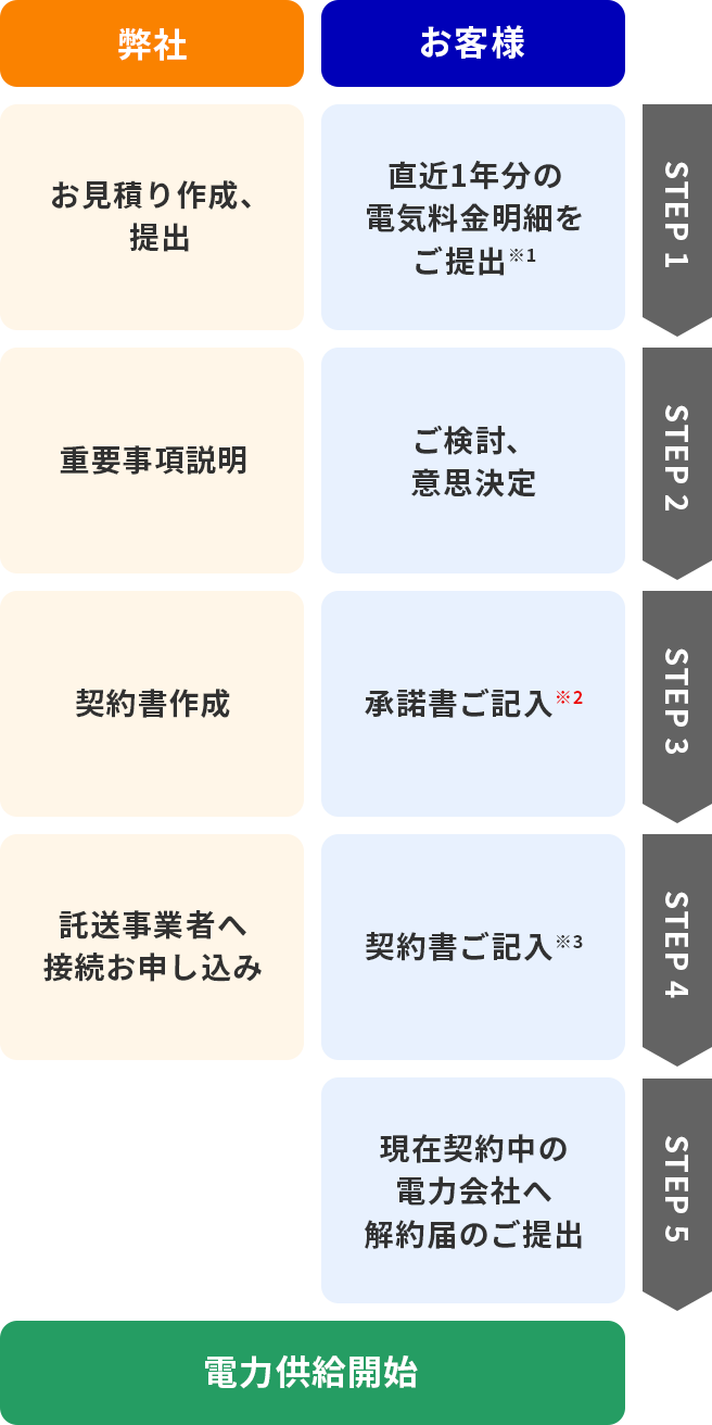 - ※必要とされる工事の期間により供給開始までの期間が変わります。